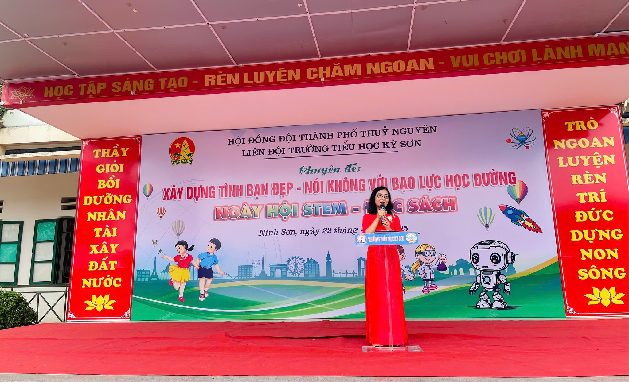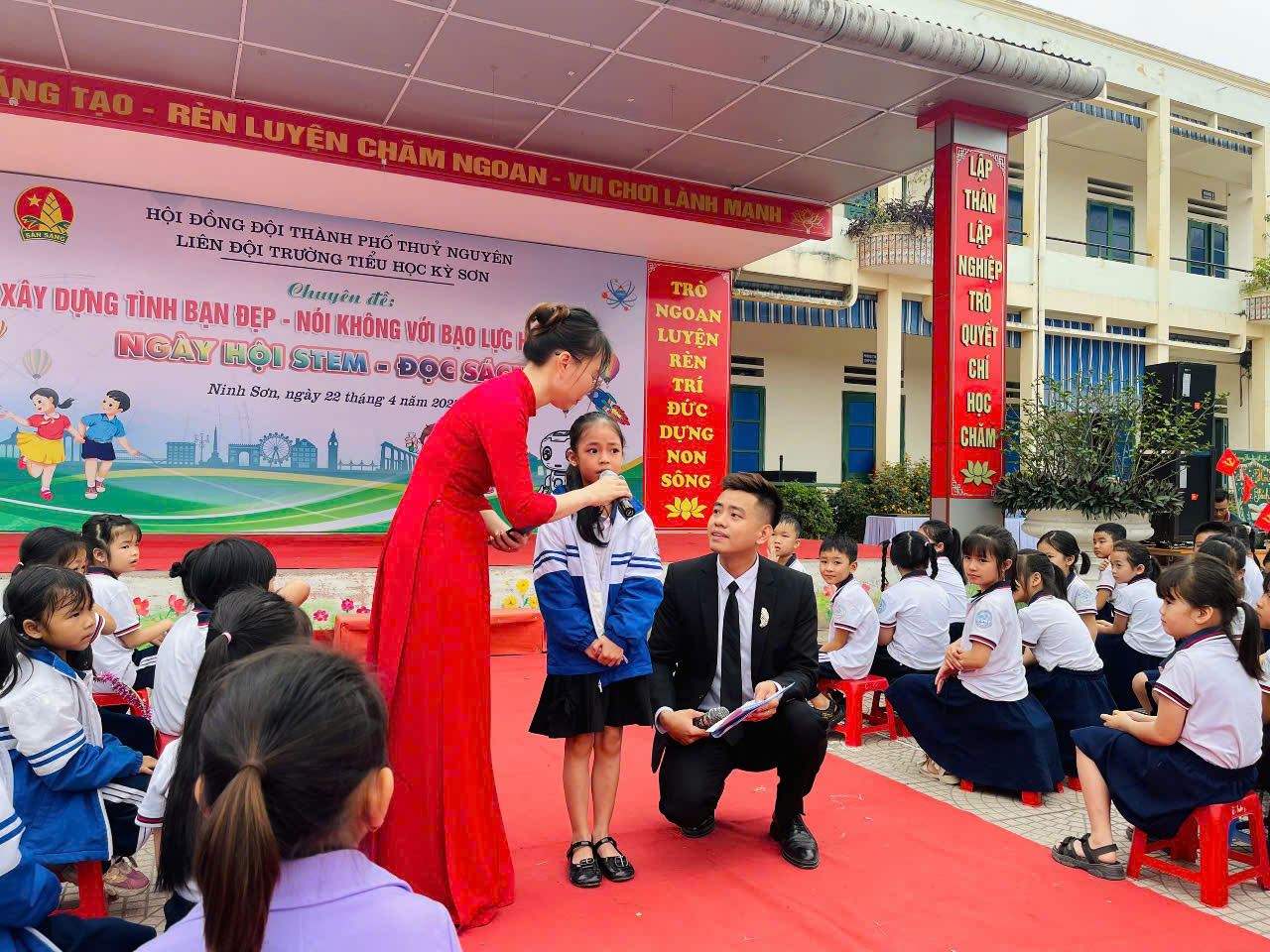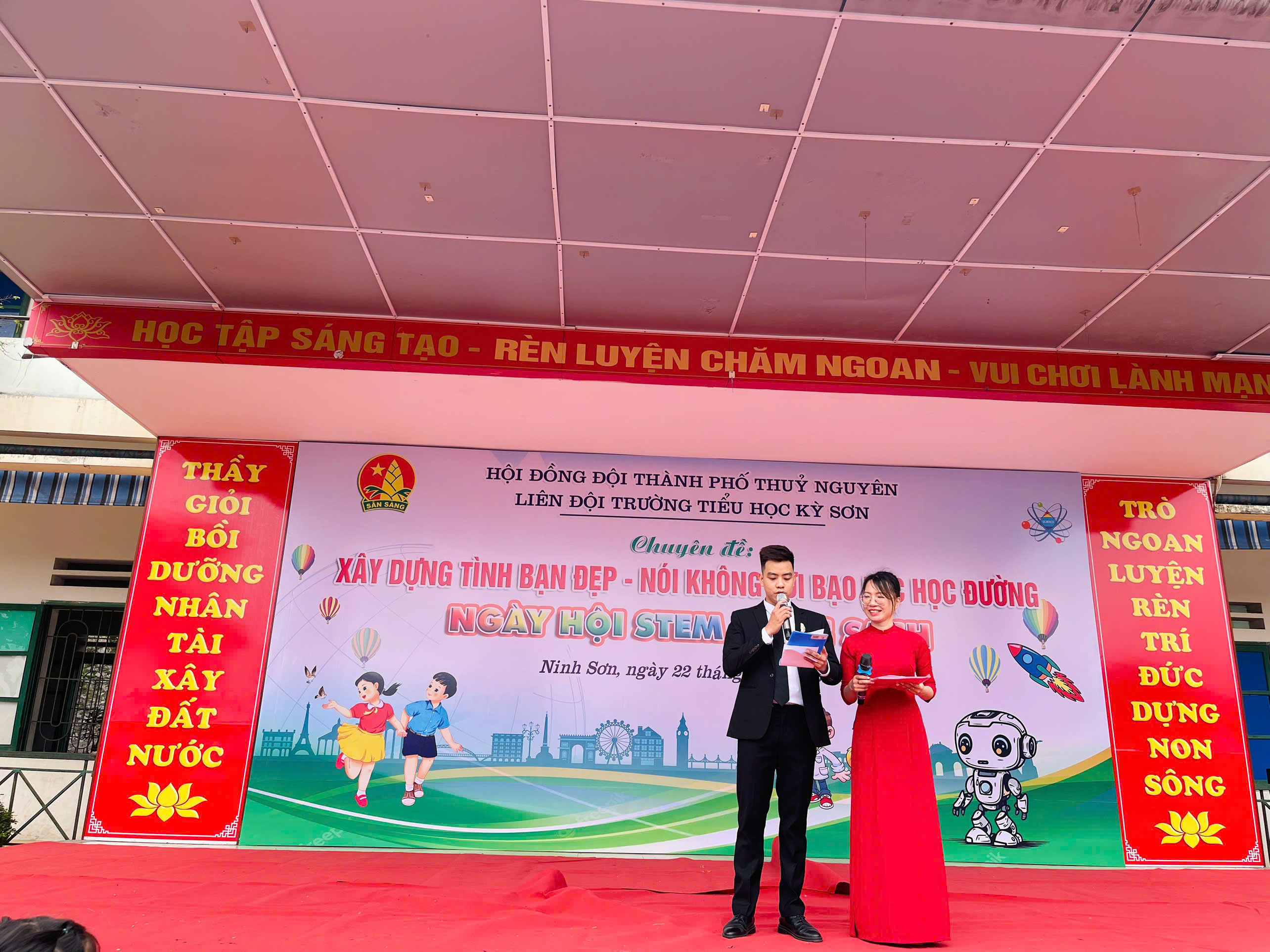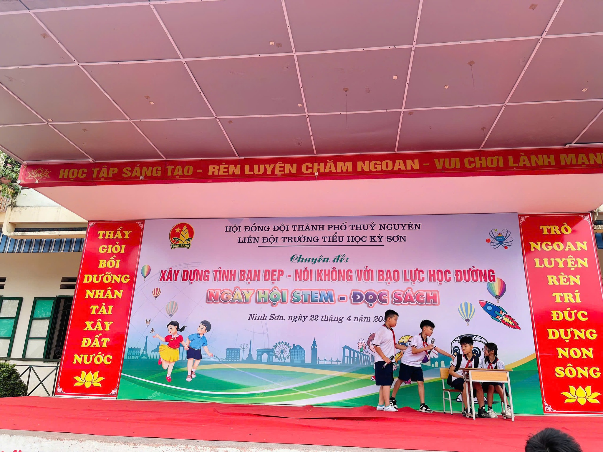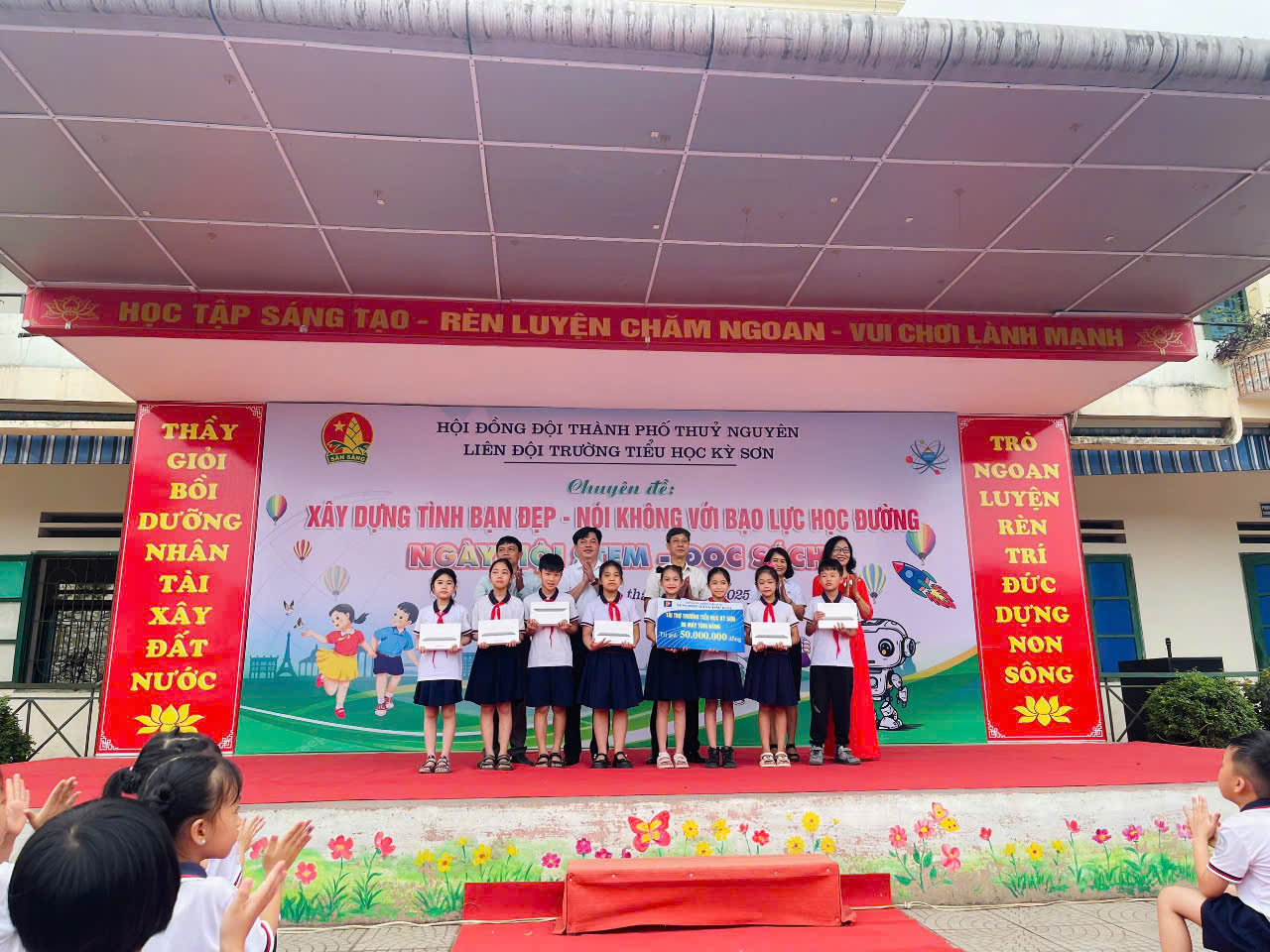 - Ngoài ra nhà trường đã kết hợp tổ chức ngày hội Stem- đọc sách trong chuyên đề và đón nhận món quà ý nghĩa đến từ xí nghiệp xăng dầu K131 : 8 chiếc máy tính bảng trị giá 50.000.000 VNĐ cho phòng học thông minh.