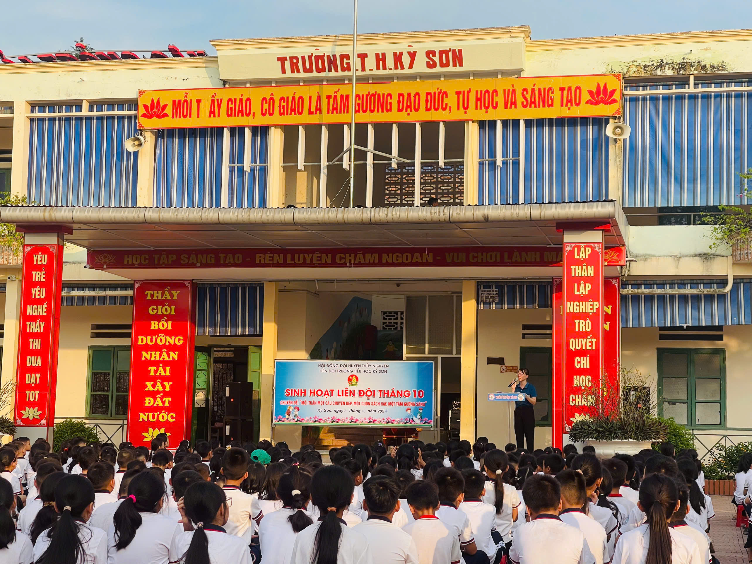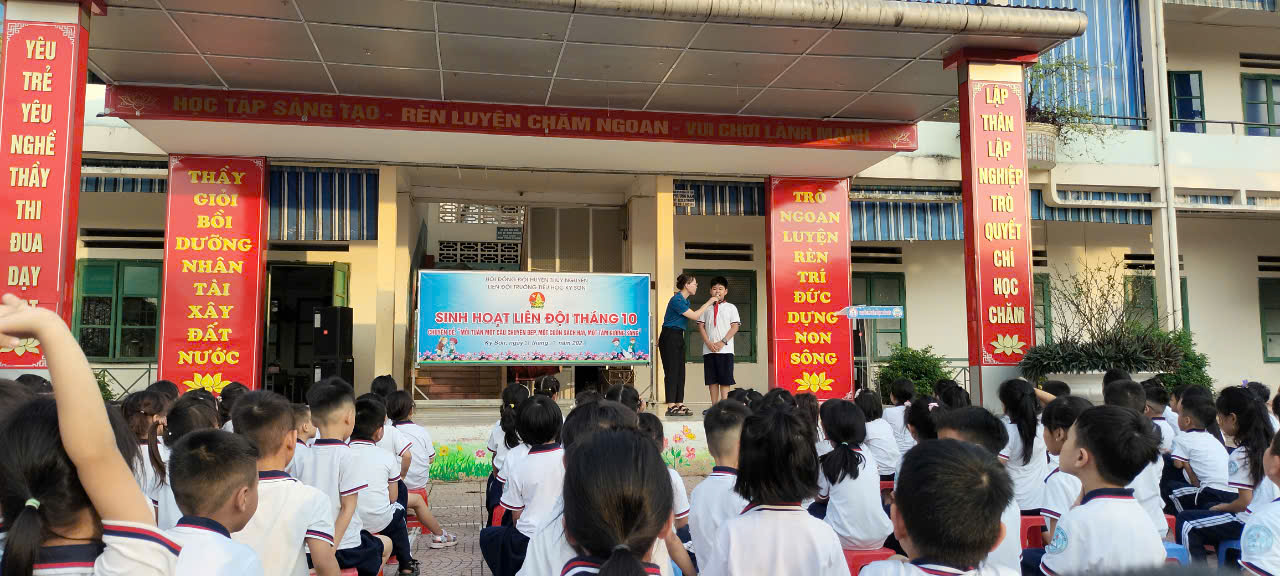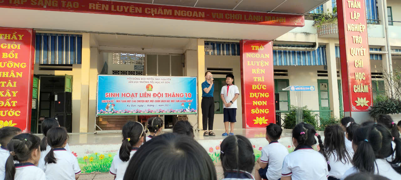 Ngày 21/10/2024 Liên Đội trường TH Kỳ Sơn tổ chức tiết sinh hoạt Liên Đội tháng 10 với chủ đề: " Truyền thống quê hương em chào mừng 76 năm Thủy Nguyên quật khởi 25/10".